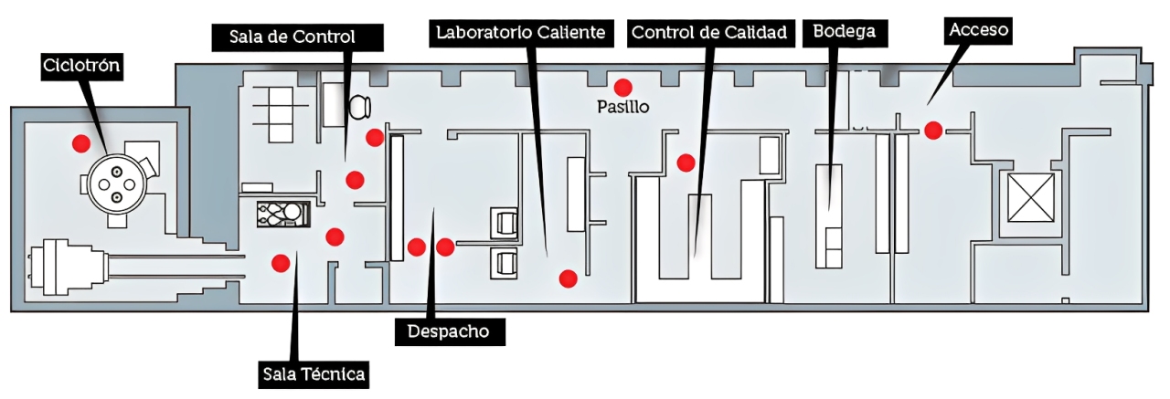 Instalaciones altamente especializadas con ciclotrón de última generación, búnker de hormigón reforzado y laboratorios blindados
